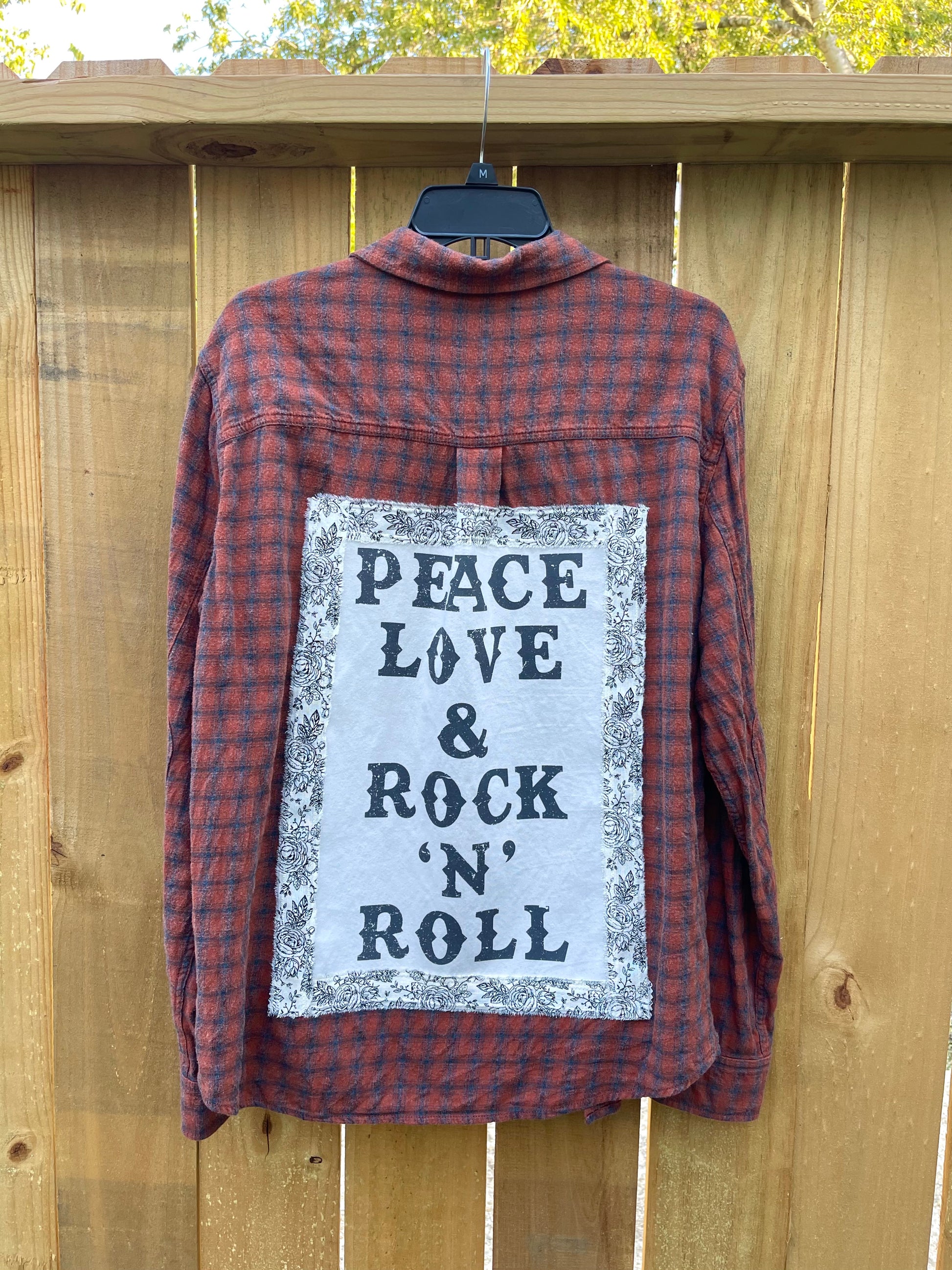 PEACE, LOVE & ROCK N ROLL UPCYCLED FLANNEL